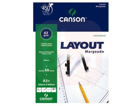 Papel Layout Margeado Branco A3 63g - Canson