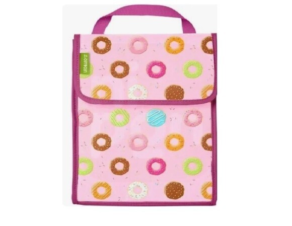 Além disso, possui fechamento em velcro, que mantém os recipientes firmes e bem acomodados, proporcionando mais segurança. Seu design moderno e delicado com estampa de donuts traz um charme especial, que combina perfeitamente com quem adora unir funcionalidade e estilo.