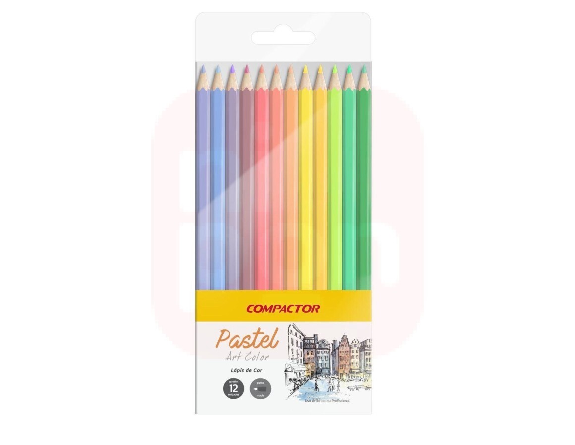 Lápis de Cor 12 Cores Pastel - Compactor
